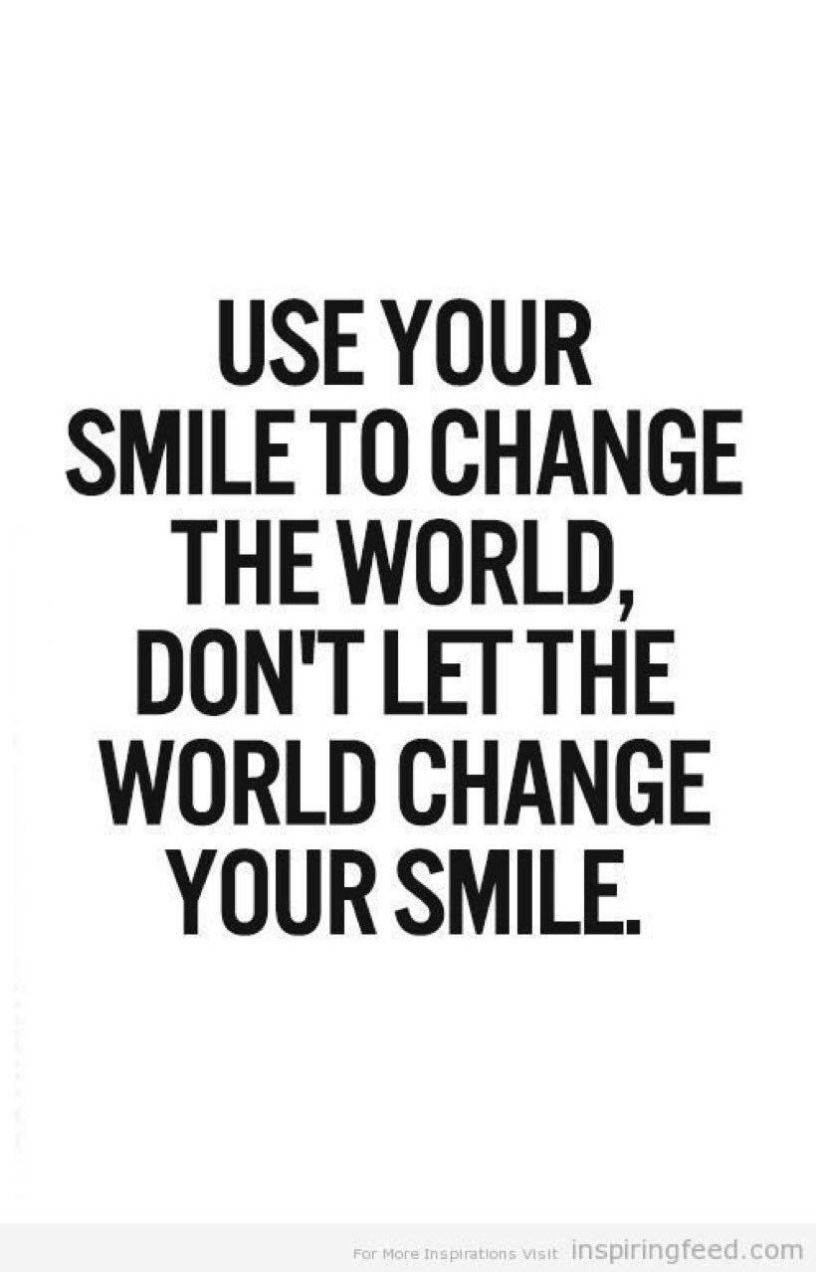 Use your smile to change the world, don’t let the world change your smile.
